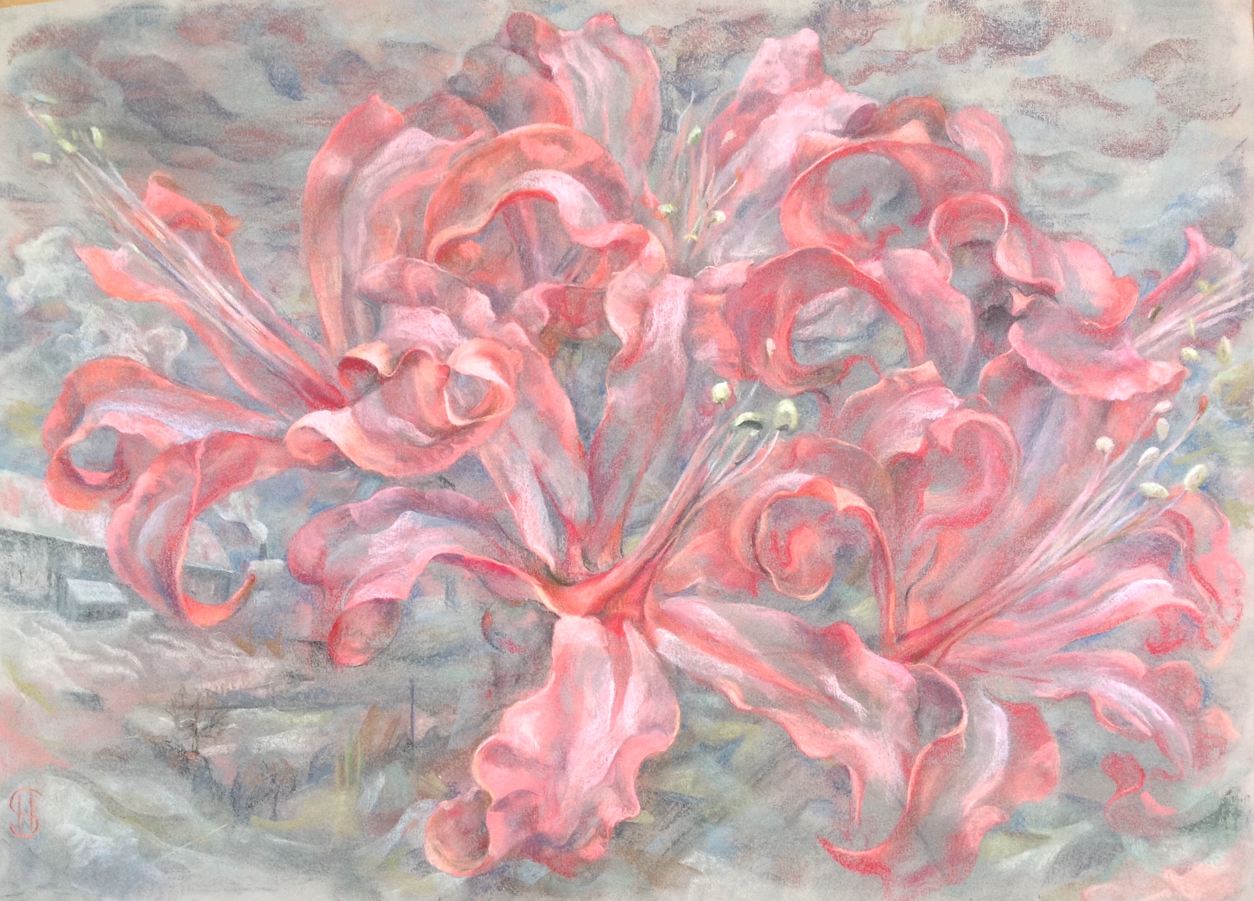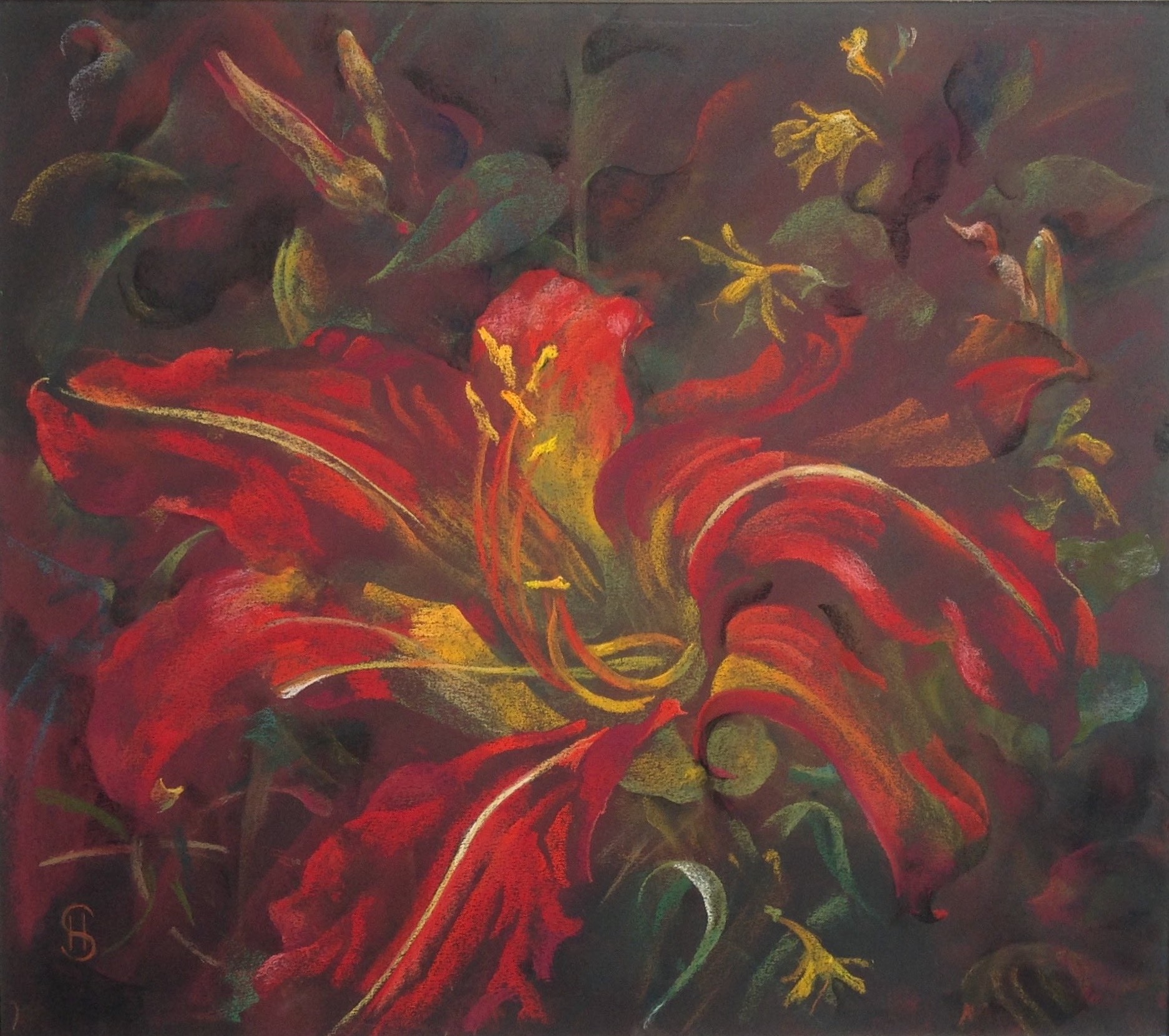 "Catching the Sun" Pastel of a Day Lily, drawn in Abbotsbury Gardens.Now sold.